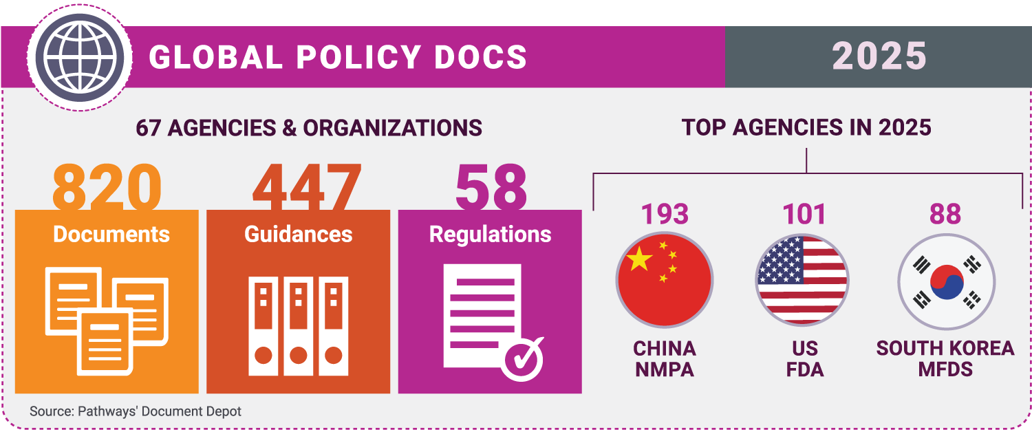 Almost 820 medtech policy items from 67 organizations representing more than 100 countries were recorded in Pathways’ Document Depot in 2025. There is no objective answer to what the most significant or important documents are on the list. What new policies matter most depends on a manufacturer’s clinical focus, technology, geography, and multiple other factors.